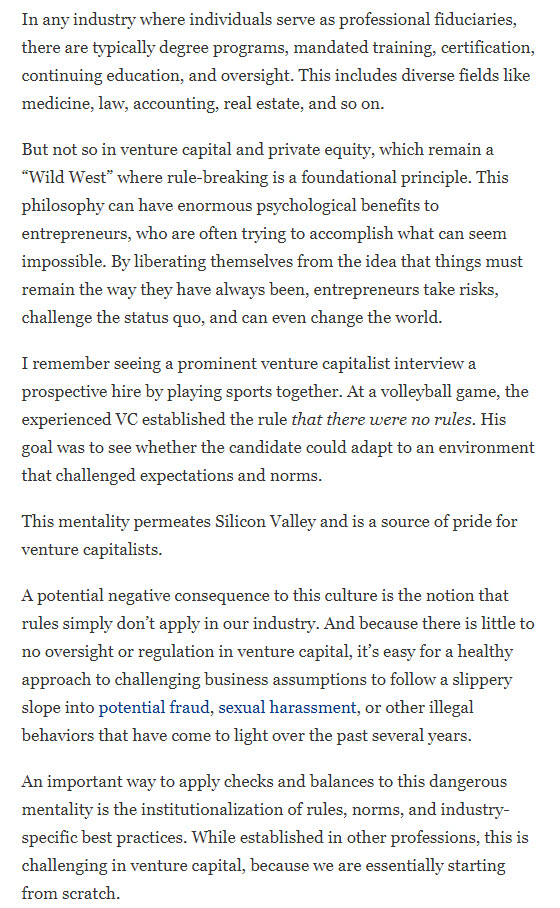 I am forwarding a link to a discussion by Scott Lenet about venture capital desperately needing more governance. I have also provided below a screenshot from part of Scott’s article. And I note of interest that Scott makes a reference to the NACD’s new Directorship Certification program which is starting soon. Here is a link to Scott’s article: Click Here For The Article